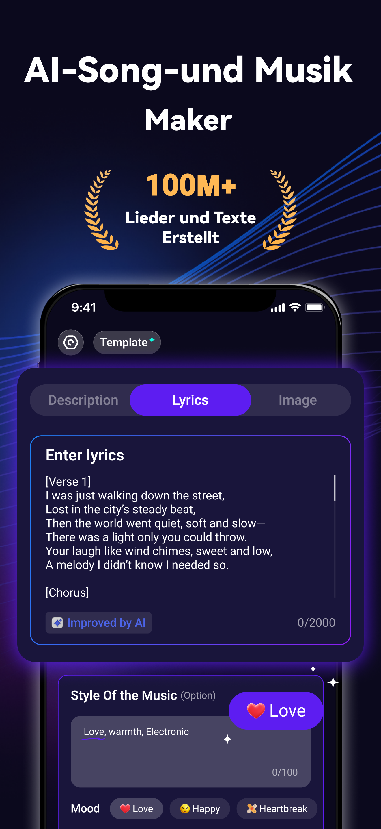 - Textgenerator: Schreiben Sie poetische, eingängige oder emotionale Texte mit KI-Unterstützung.