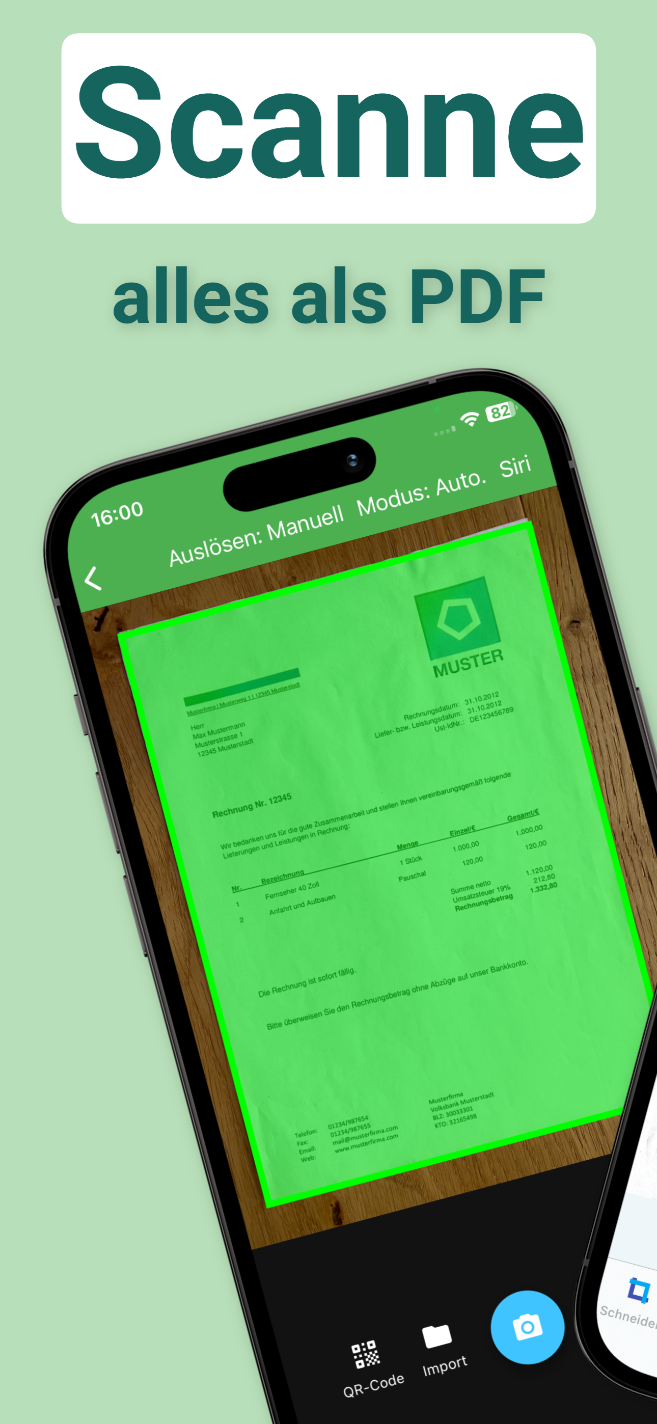 Durch zuverlässige Dokumentenerkennung, automatisches Auslösen der Kamera im perfekten Moment, Perspektivkorrektur und intelligenter Farbkorrektur kannst du mit der PDF Scanner App Dokumente optimal scannen (scan to PDF).