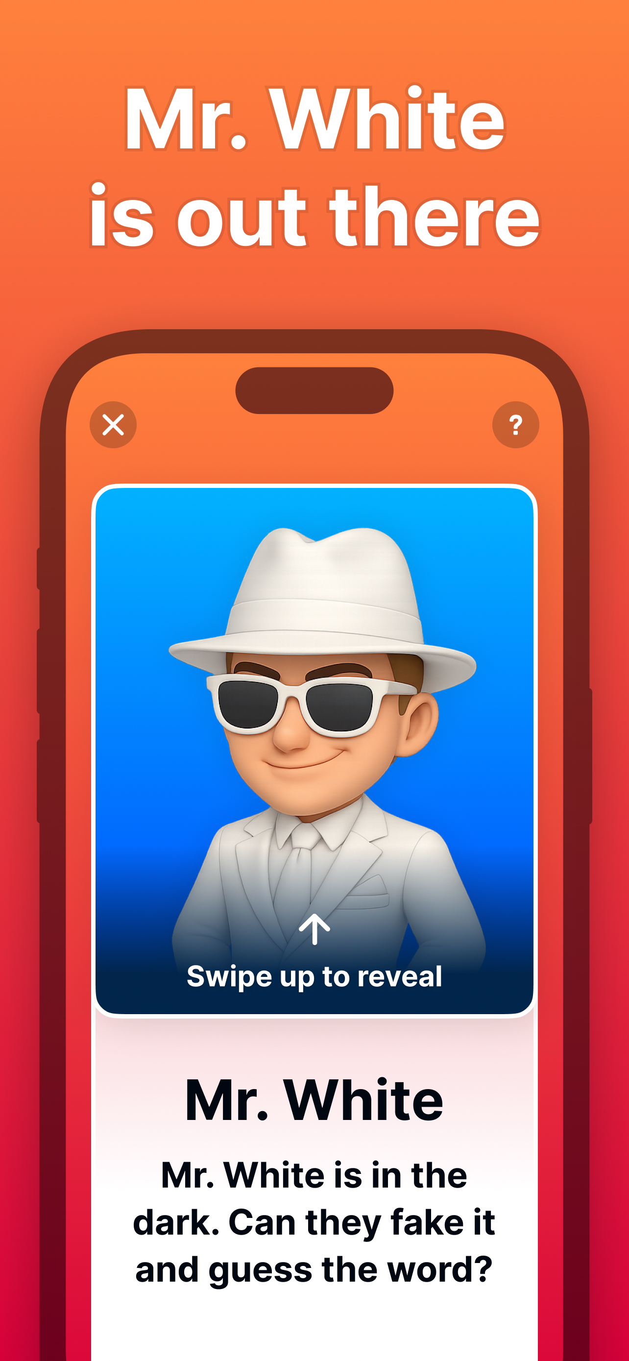 But there’s another wildcard in the mix: Mr. White. This player doesn’t receive any word at all. No clue, no help, only improvisation and bluffing. If Mr. White survives the round or correctly guesses the word, they win.