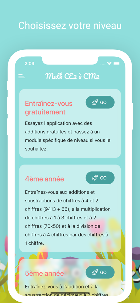 De la CE2 à la CM2, l’application couvre une large gamme de sujets mathématiques tels que: