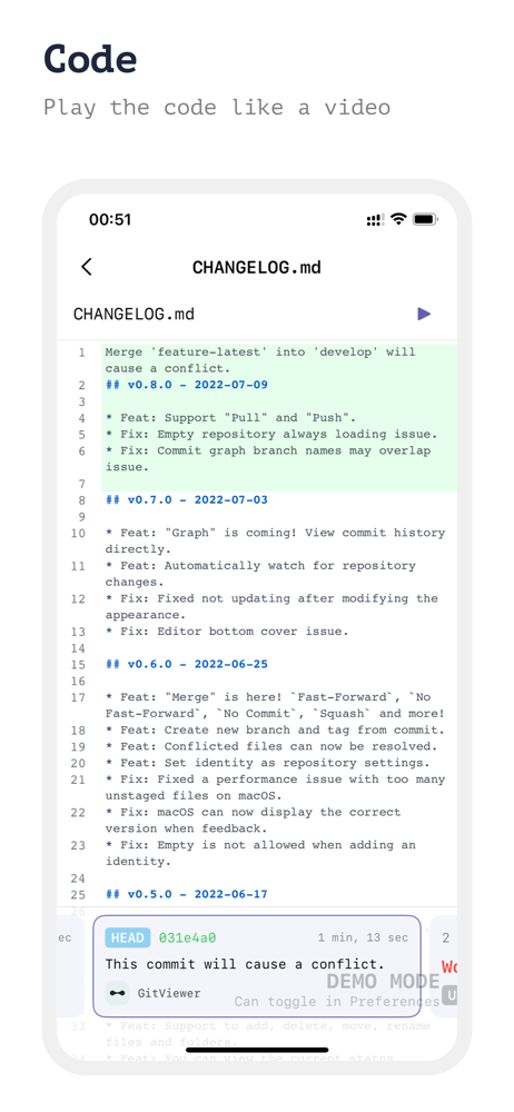 * Play code history like a video.