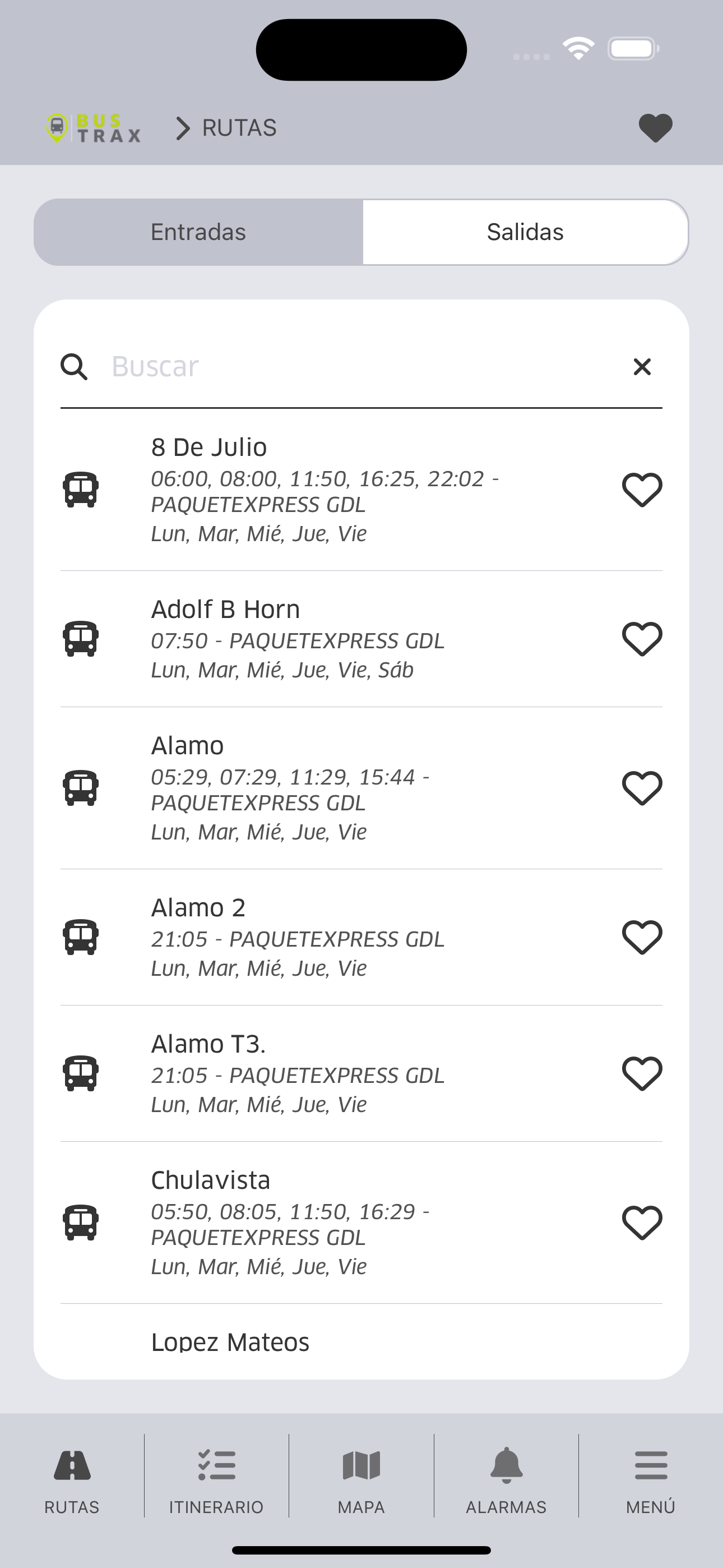 Bustrax utiliza dispositivos GPS para obtener la ubicación de tu autobús y mostrarte en un mapa y en tiempo real dónde está y estimar la hora en la que llegará al punto donde abordas la unidad y a tu destino.