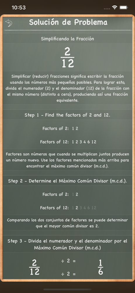 MathBoard Fractions también contiene un Solucionador de Problema poderoso que permitirá a los estudiantes a seguir los pasos necesarios para determinar cómo obtener respuestas para-