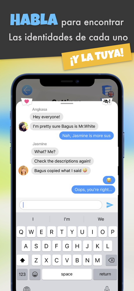 • Tiempo de votación: Después de hablar, voten para eliminar a la persona que parece tener una palabra diferente a la suya. ¡La app revelará entonces el rol del jugador eliminado!