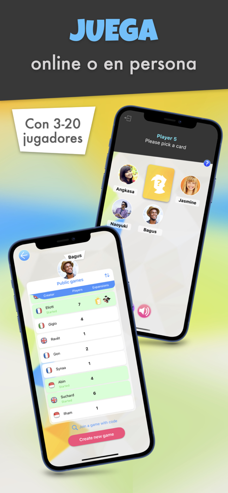 ¡Está en el lugar correcto! Como los juegos para romper el hielo Werewolf, Codenames o Spyfall, Undercover se creó para asegurar la participación activa de todos/as los que pueden leer y escribir. Las risas y sorpresas están garantizadas!