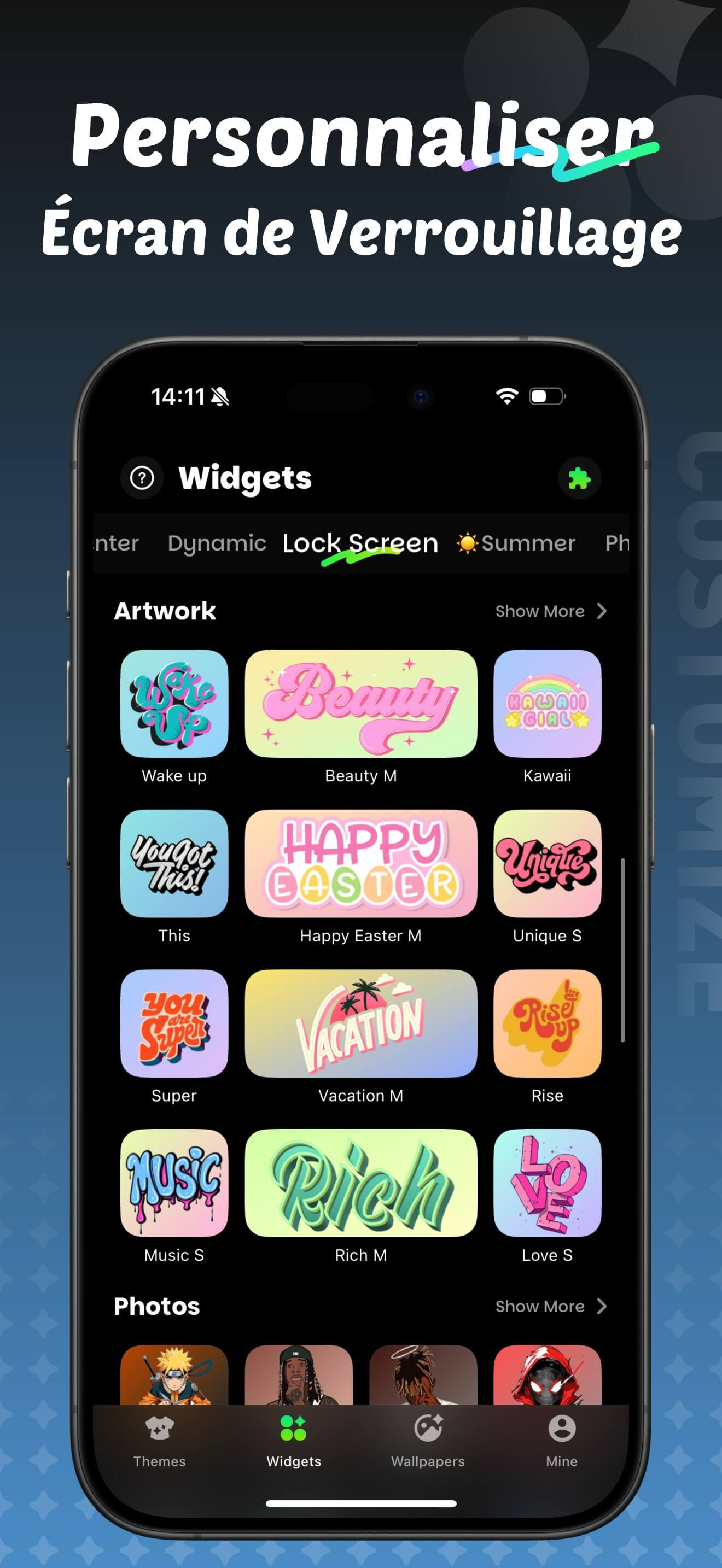 We integrate global designer and artist resources to provide users with super exquisite massive theme packages, which perfectly integrate widgets, icon packs, and wallpapers, while highlighting the practical value of widgets, while retaining the unique beauty and aesthetic value of each widget. It only takes a few steps to set up the entire theme and decorate your phone interface with one click. In addition, we continue to update and release new themes to meet the diverse needs of users.We provide users with the most popular wallpaper resources, so that your phone is always wonderful, real-time updates, a variety of categories, to meet your imagination of wallpaper.