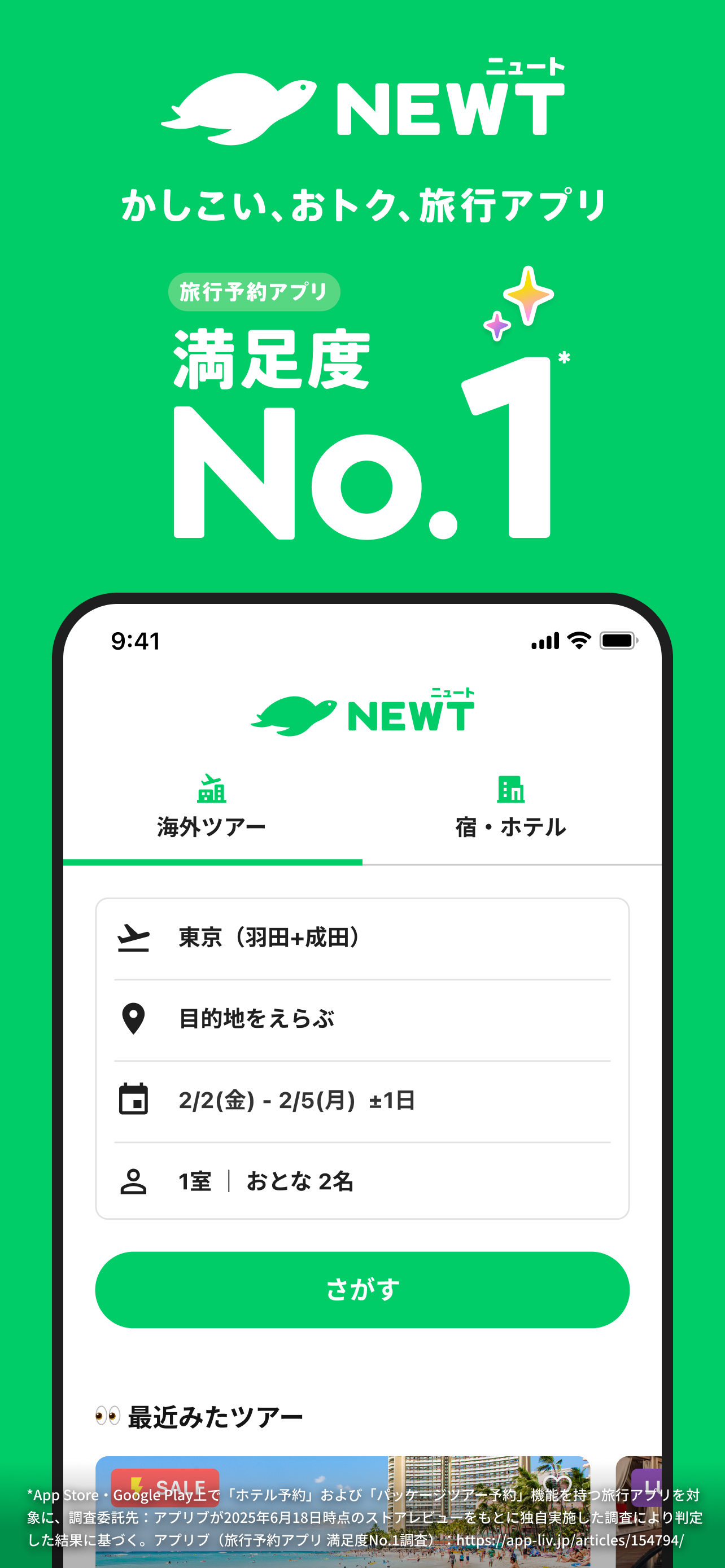 「NEWT」でかんたんに、おトクに、自分に合う海外・国内旅行をさがしましょう。