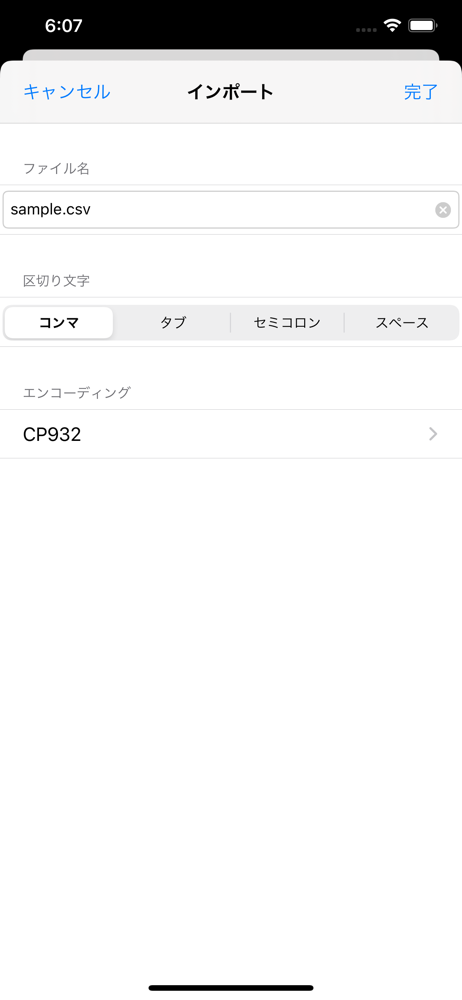 いろいろな文字コードのファイルをインポートできます。