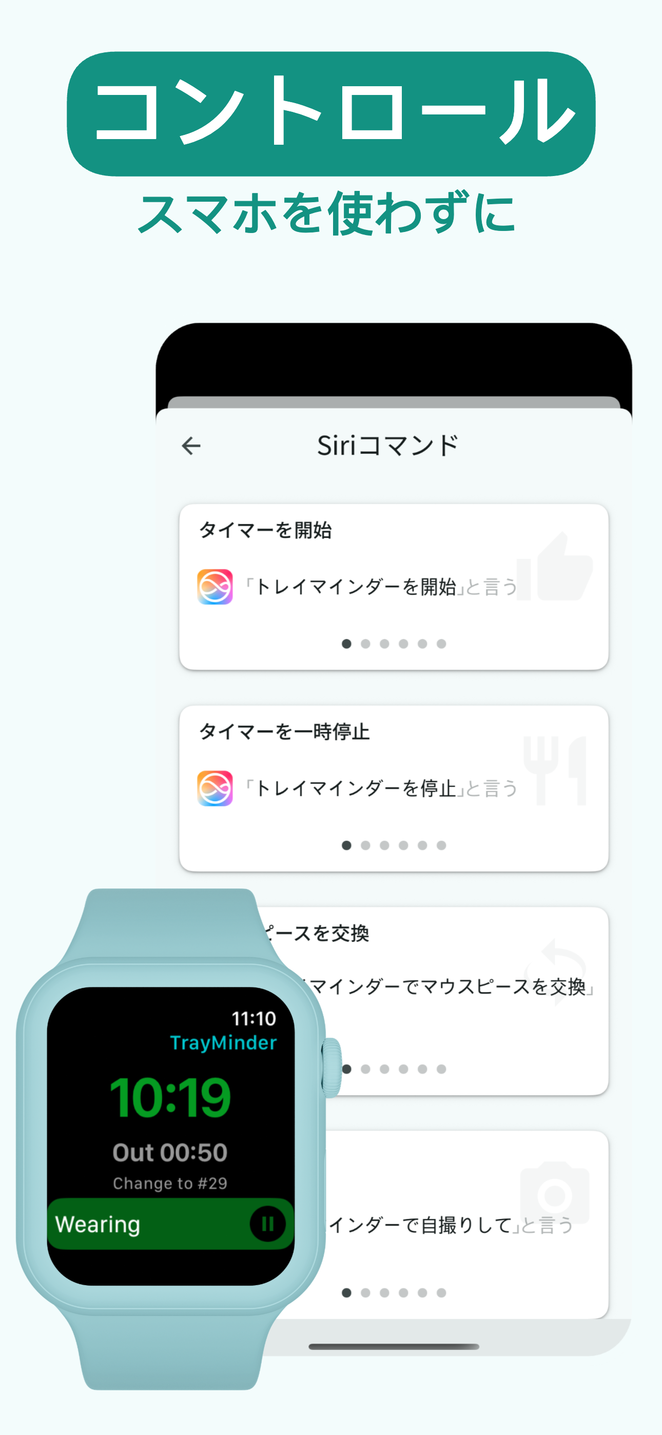 • タイマーの開始/一時停止で、毎日の装着時間を記録
