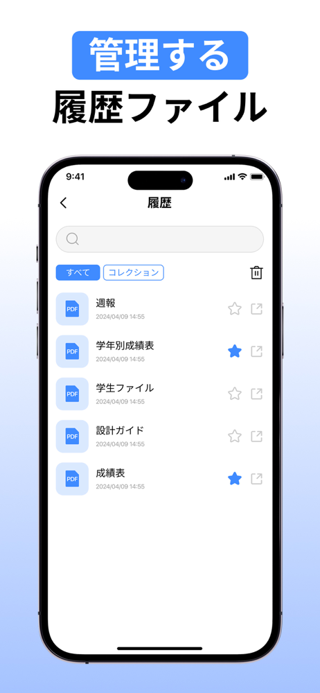 - ファイルの紛失を防止。変換した写真やPDFはすべて履歴に自動的に保存されるので、いつでも簡単にアクセスできます。
