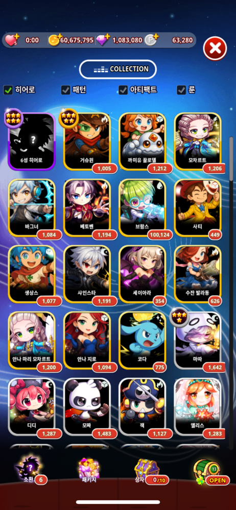 - 영웅을 성장시키세요, 최대 6성까지 강화할 수 있습니다.