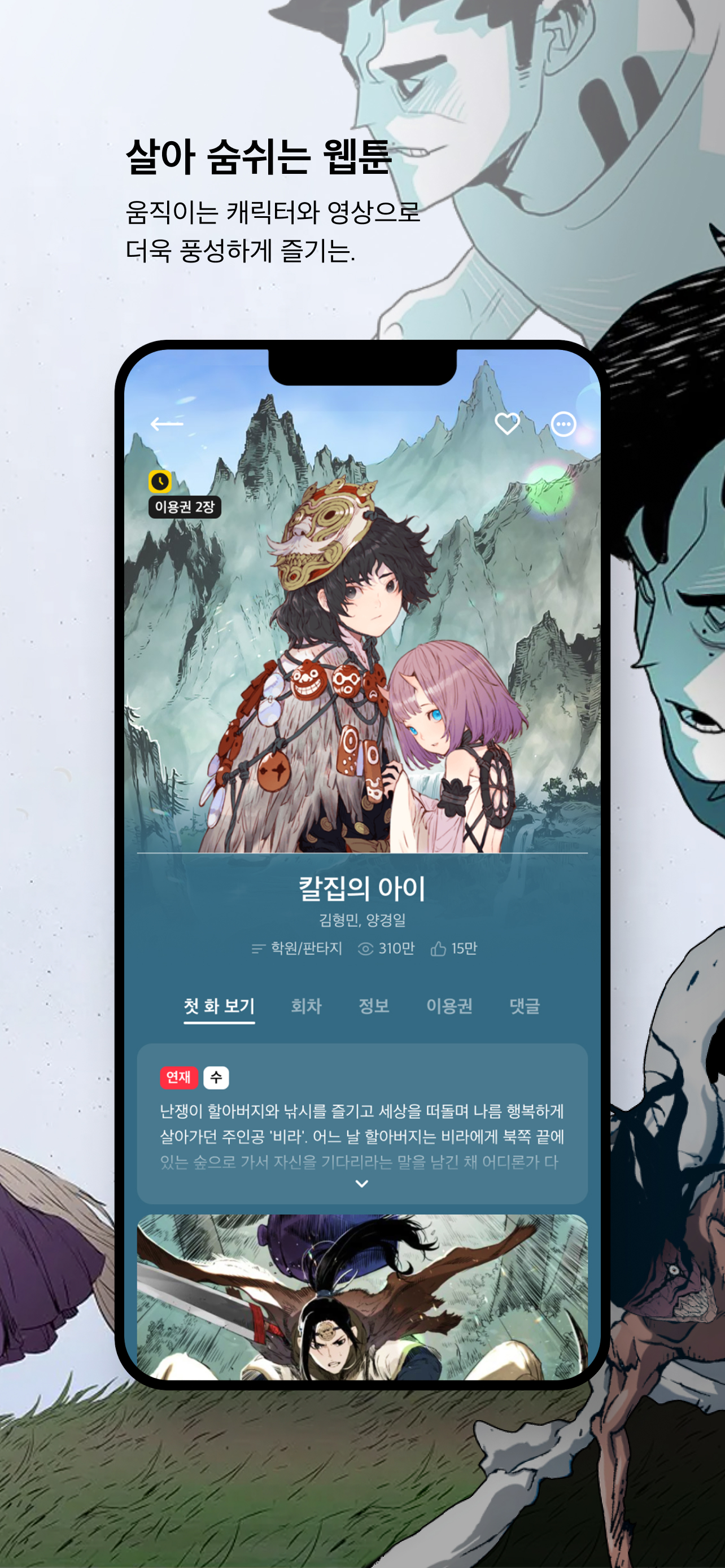 스토리를 인정받은 고품격 웹툰을 감상해보세요.