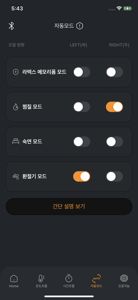 타이머를 24시간 내에서 켜고 끌수 있도록 기능 추가 부탁드립니다 기존 일정 시간 정해두고 꺼지도록 해놓으면 미리 침대 온도를 달구기위해 켜두었다가 새벽시간에 꺼져서 추워지는 경우가 있습니다 새벽시간에는 안꺼지도록 옵션으로 하던지요 어쨌거나 젤 좋은 방법은 시간대 정해서 켜고 끌수 있게 해주는게 좋겠습니다